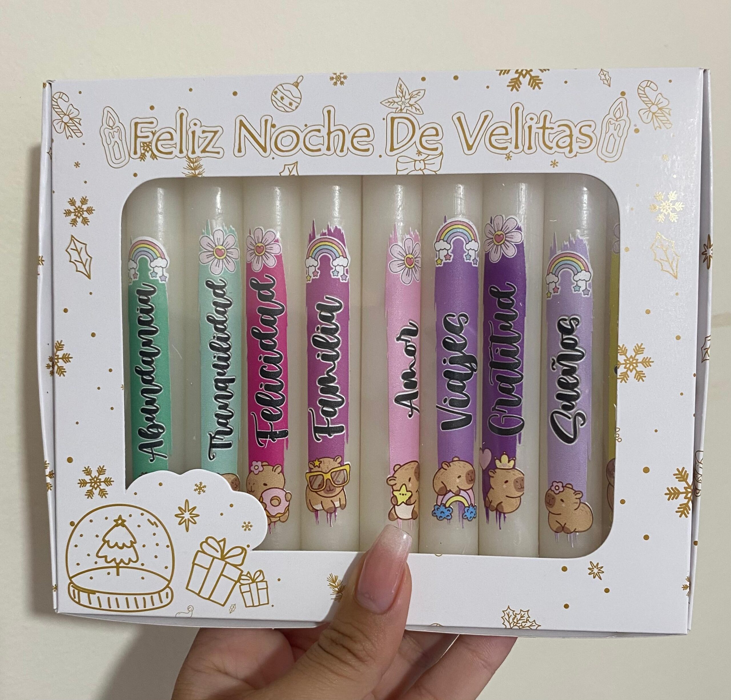 Ternura y buenos deseos en cada vela: abundancia, felicidad, familia, amor y más. Un detalle especial para compartir en pareja y en familia, porque la verdadera luz nace del amor y los momentos juntos